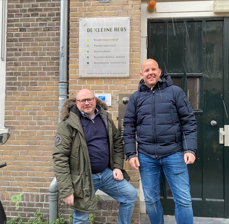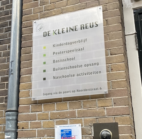 KC De Kleine Reus is een Integraal Kind Centrum voor ontwikkelingsgerichte opvang, activiteiten en onderwijs in het hart van Amsterdam. Het kindcentrum ligt aan de smalle Noorderstraat die parallel loopt aan de Prinsengracht en de Nieuwe Looiersstraat. Een grote statige paardenpoort geeft toegang tot het schoolplein. Elk kind dat via de poort het schoolplein oploopt, ziet de mooie grote bomen waar tussendoor een prachtig houten bouwwerk loopt. Onder en naast deze imposante constructie ligt veel ruimte voor kinderen om te spelen met planken en stukken hout. En er is een pomp en een geul waar water doorheen loopt. Directeur Ilse Boellaard: “De Kleine Reus biedt goed, uitdagend onderwijs en veilige opvang voor kinderen van 0 tot 12 jaar. Alle activiteiten worden vanuit een gezamenlijke visie en missie uitgevoerd. Voorop staat daarbij dat kinderen van nature nieuwsgierig zijn, (zelf )vertrouwen hebben en openstaan voor de ander en de wereld om zich heen. Daar hoort een fijn gebouw en natuurlijk een gezond binnenklimaat bij”. In het kader van het programma Gezonde Schoolgebouwen werden tien decentrale units geplaatst.