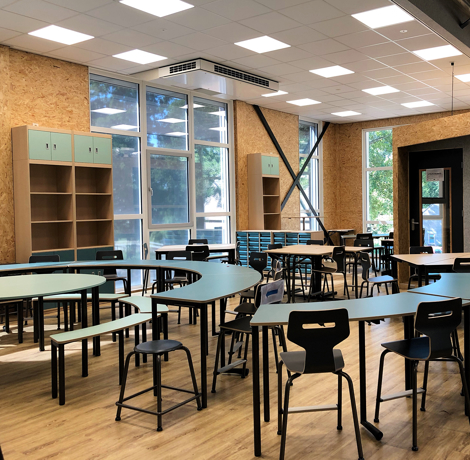 In het gebouw zijn 23 decentrale ventilatie-units met warmteterugwinning gemonteerd. Kantoren en kleinere ruimtes kregen een Airmaster 300, voor middelgrote vertrekken als het kinderdagverblijf met slaapkamertjes werd de Airmaster 800 geïnstalleerd en in de grootste ruimten hangt een Airmaster 1000.