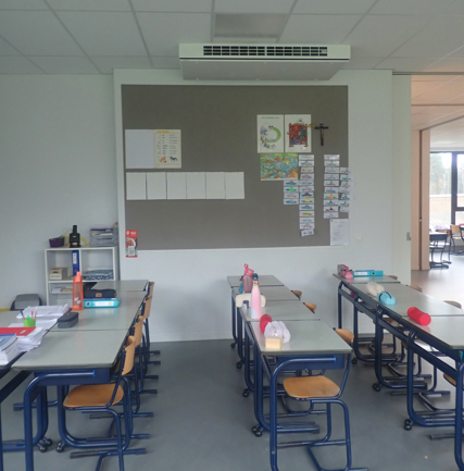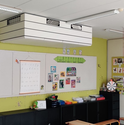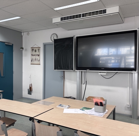Om het leef- en leerklimaat in de school voor de komende vijftien tot twintig jaar op het huidige niveau van Frisse Scholen Klasse C te krijgen, besloot het schoolbestuur alle ventilatie-units te vervangen door nieuwe. De school klopte hiervoor aan bij Airmaster, de leverancier die zestien jaar geleden de inmiddels verouderde ventilatie-toestellen had geplaatst. Gekozen werd voor de moderne variant met nagenoeg dezelfde afmetingen. “Dit stille toestel zuigt per uur 750 kuub vervuilde lucht uit het lokaal en blaast frisse lucht het lokaal in”, zegt Phillip Spencer Davies, projectadviseur Airmaster. “Dat gebeurt geheel automatisch. Docenten hebben er geen omkijken naar. Het systeem past zichzelf aan, op basis van het aantal aanwezige personen in