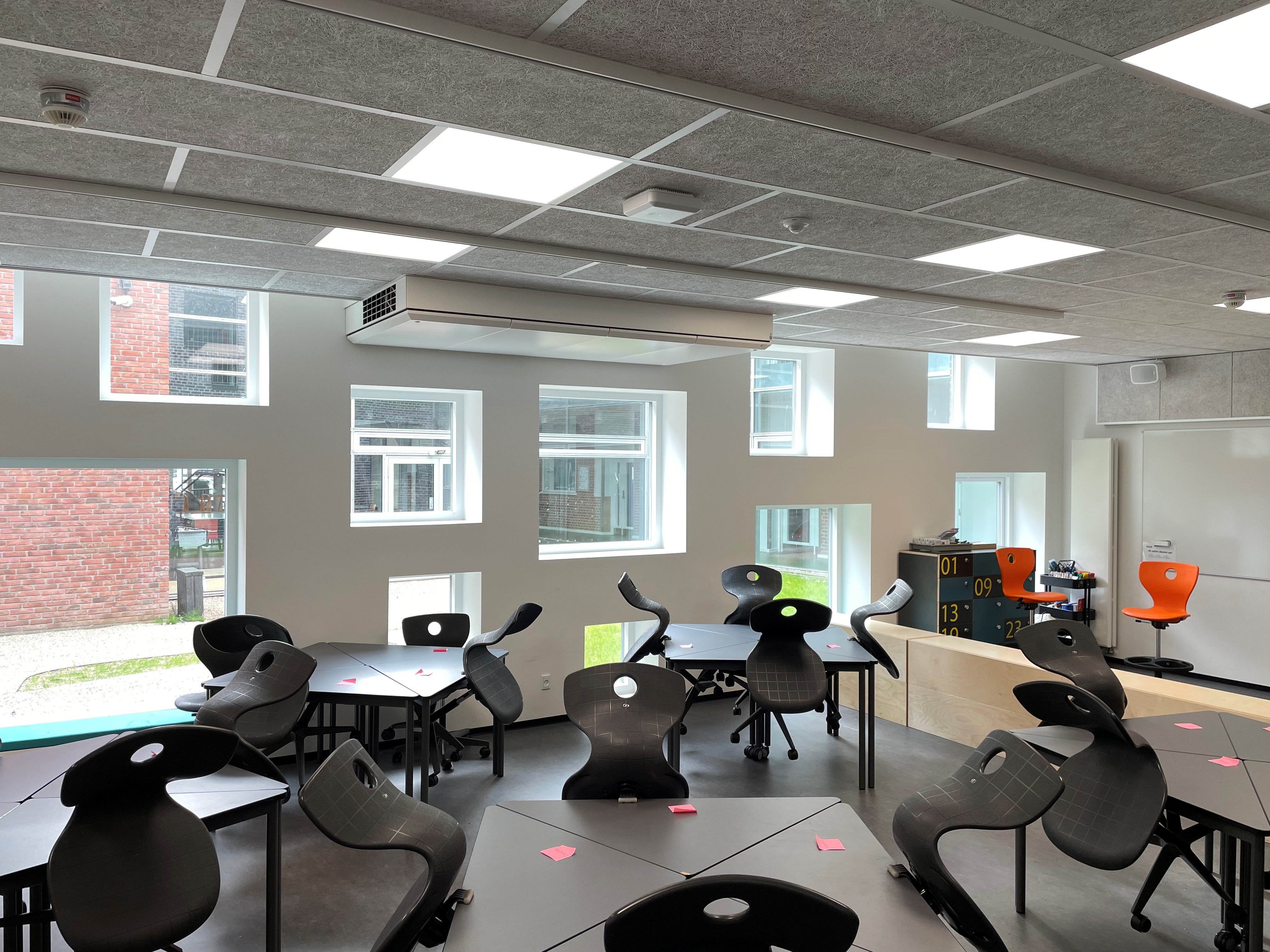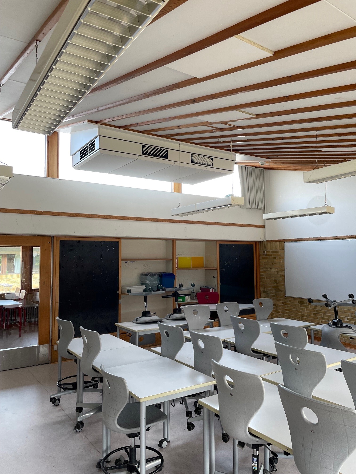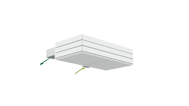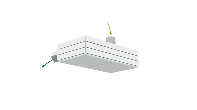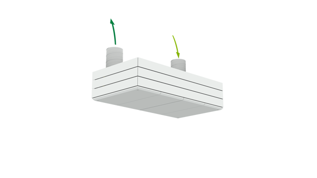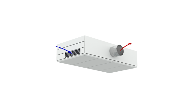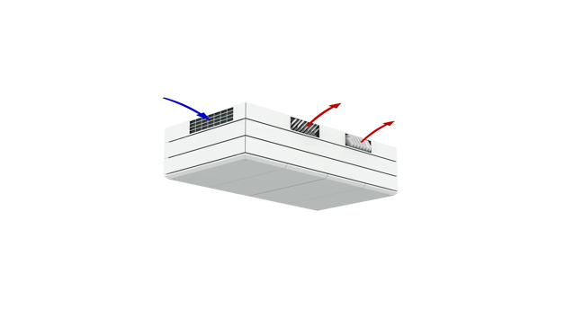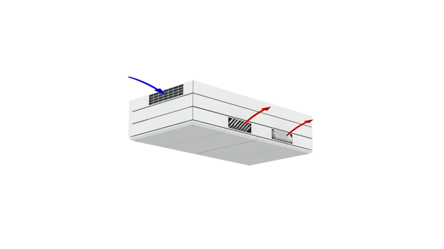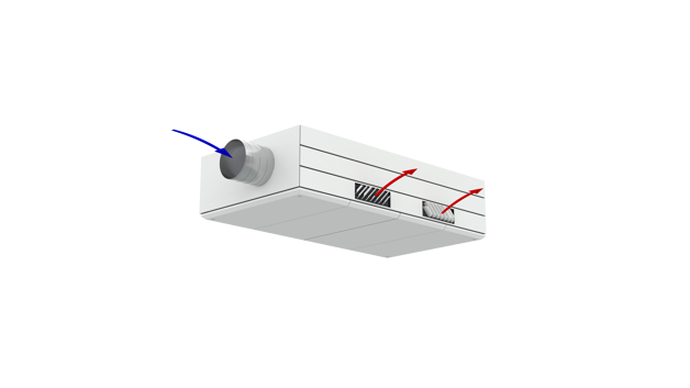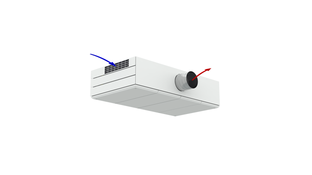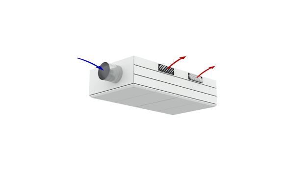 Daarom heeft de AM 1000 een automatisch regelbare luchttoevoer – de zogenaamde Adaptive Airflow™. Dankzij een speciale inblaasdiffuser (patent aangevraagd) wordt het inblaaspatroon aangepast aan het gevraagde luchtvolume en aan de geometrie van de ruimte.